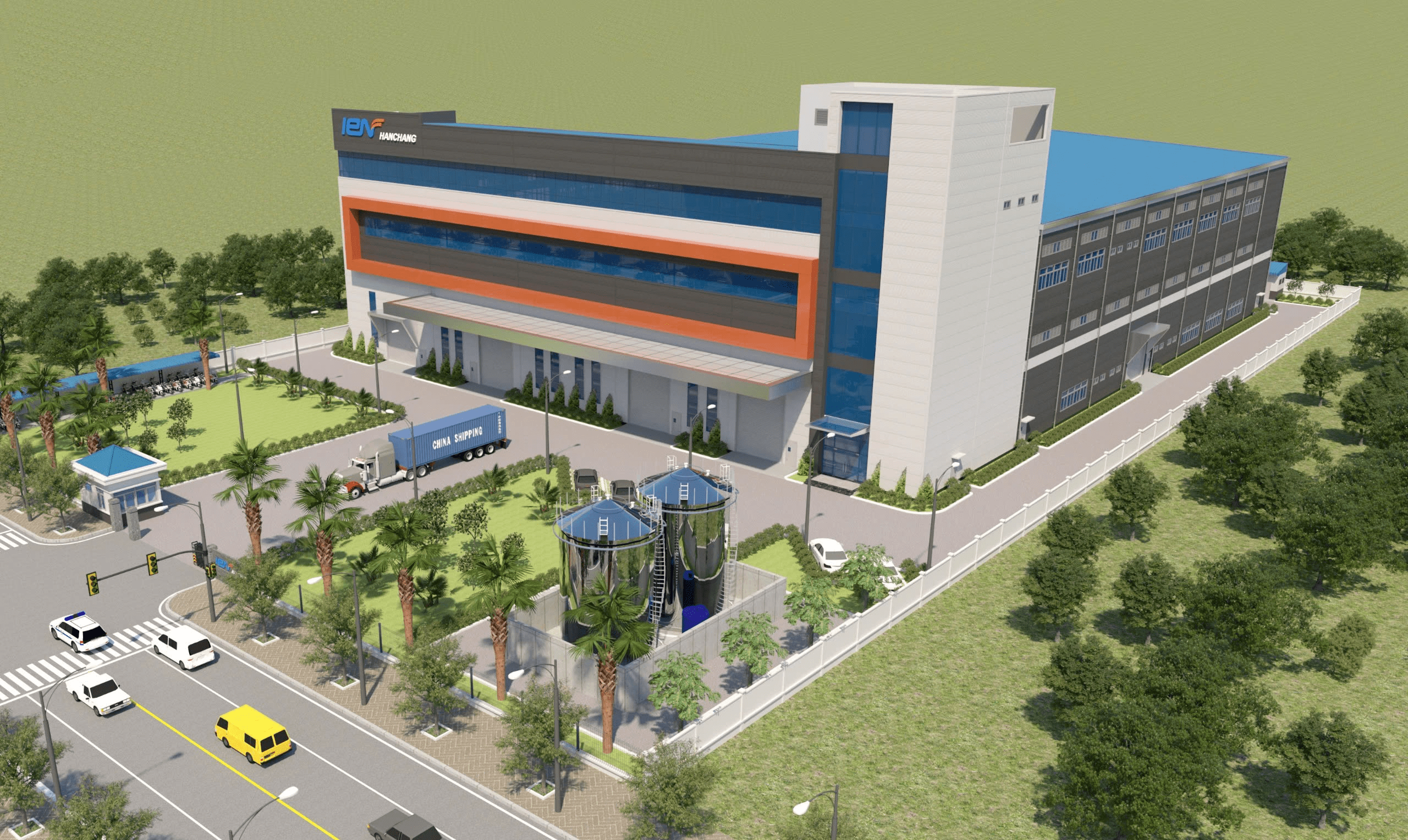 + Nhà xưởng, văn phòng, canteen: diện tích xây dựng: 1.335,7m2; tổng diện tích sàn: 5.342,8m2; chiều cao công trình: 31,4m; số tầng: 04 tầng ( tầng 1 & 2: nhà xưởng; tầng 3: văn phòng; tầng tum: trạm biến áp)